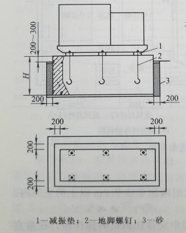 2、按三葉羅茨鼓風機基礎(chǔ)與地腳螺栓圖做地基,混凝土基礎(chǔ)留有充裕的地腳螺栓安裝孔。